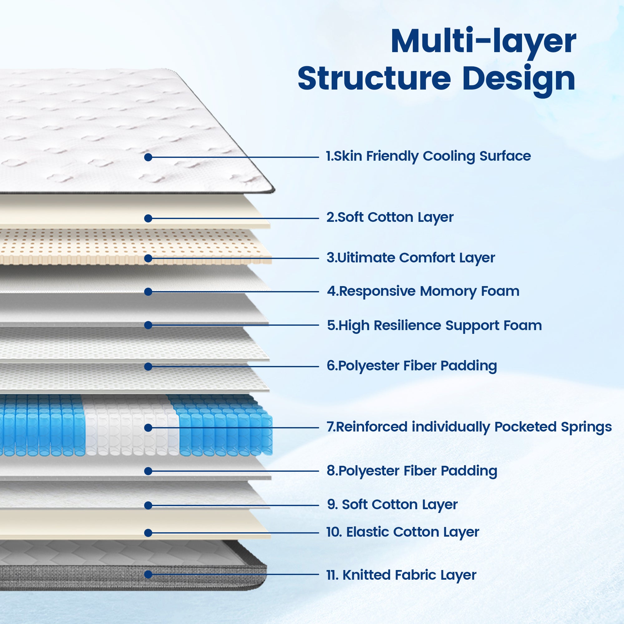 Experience the next generation of sleep technology - 11 layers designed for perfect balance, breathability, and support.