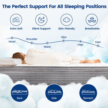 Our mattress is built with 11 layers of adaptive comfort, blending high-density foam, breathable fabrics, and temperature-regulating tech. It’s designed to feel soft and plush on top — yet supportive underneath — like sinking into a cloud that still keeps your spine aligned.